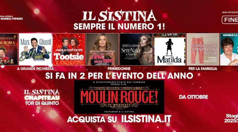 Leggi tuttoTeatro Sistina: ecco gli spettacoli della Stagione 2025/2026 e il nuovissimo Sistina Chapiteau con “Moulin Rouge! Il Musical” TRA NOVITÀ